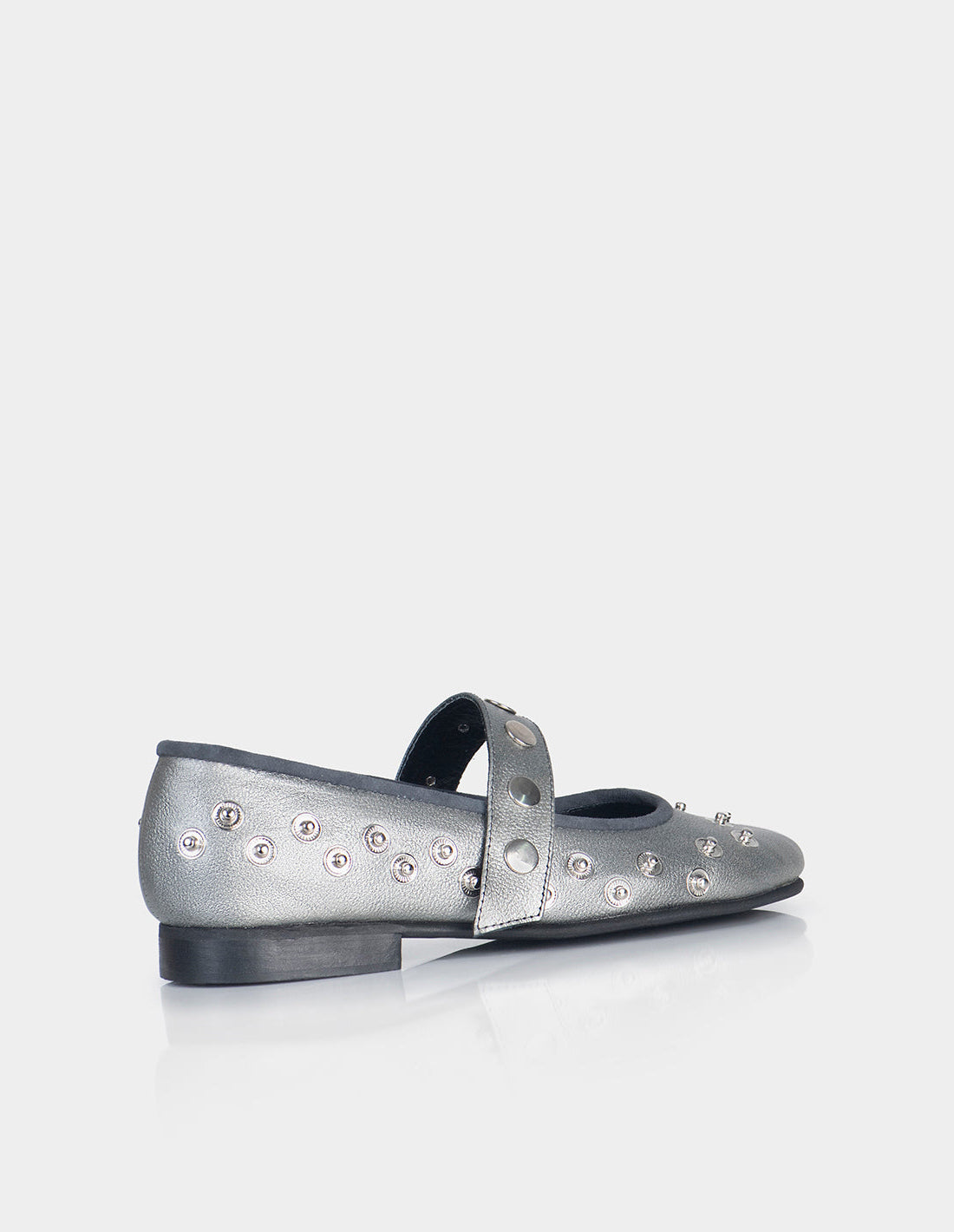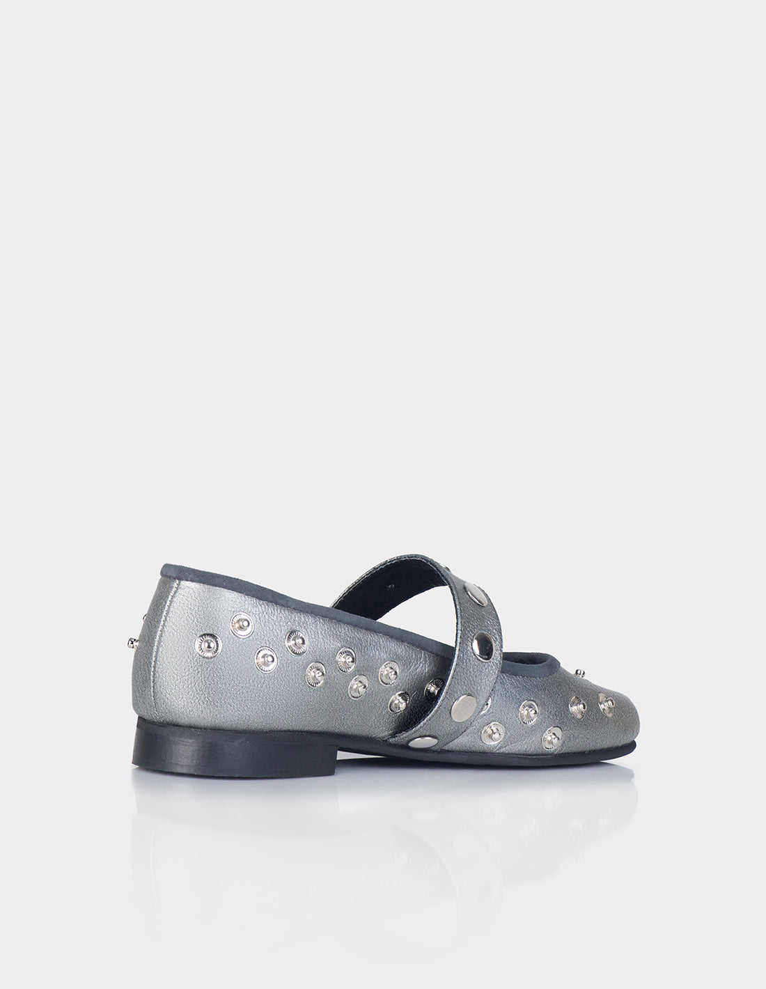 Para mantener el brillo y la textura del cuero metalizado, limpia las bailarinas con un paño suave y seco. Aplica un producto específico para cuero metalizado para preservar su acabado original. El forro de cuero puede mantenerse en perfecto estado con un paño húmedo suave y evitando el exceso de humedad.