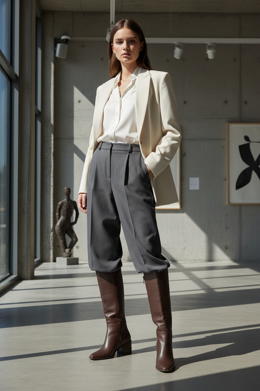 Caña: Alta y estructurada, ajustándose cómodamente a la pierna para una apariencia estilizada.