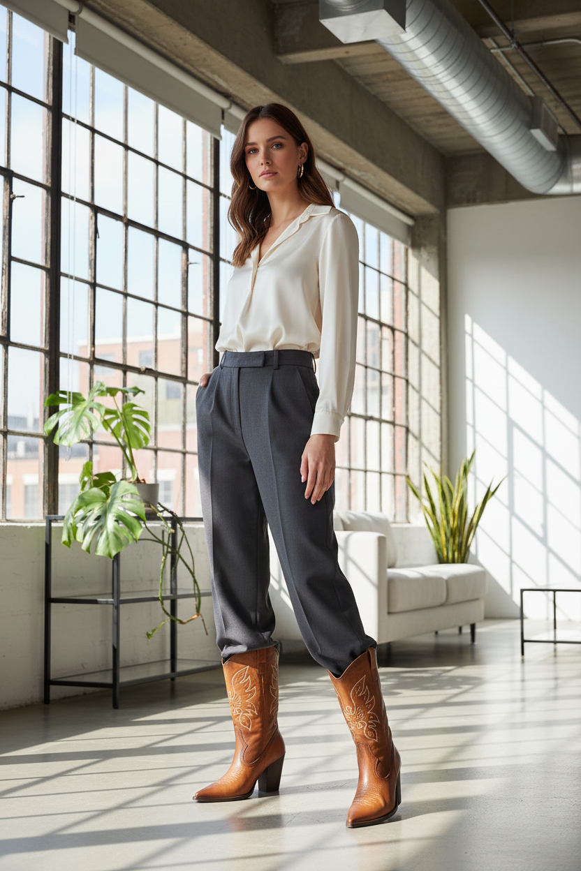 Texana Zaragoza en cuero miel genuino con bordados artesanales y tacón de 7,5 cm. Forro textil, cierre sin cremallera con tiradores, horma normal. Tallas 35–40. Combina elegancia occidental con comodidad diaria; ideal para looks vaqueros chic con jeans o vestidos. Mantén con crema especializada para cuero.