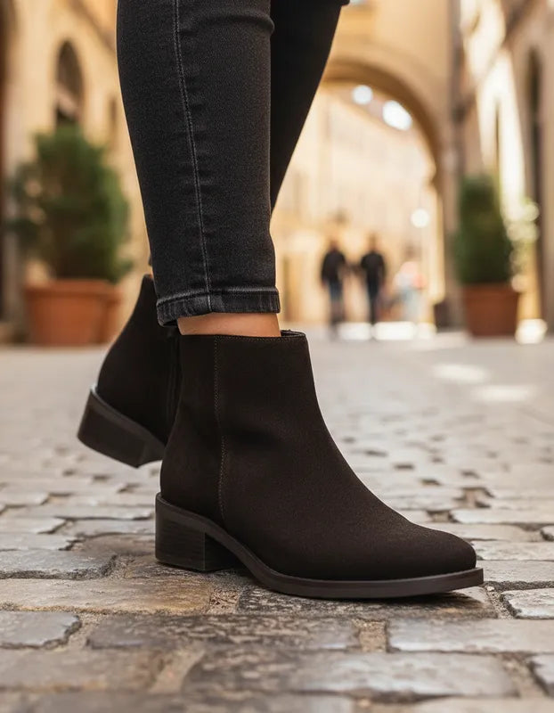 Su diseño de caña corta, punta semi-puntuda y tacón ancho bajo brinda estabilidad y confort durante todo el día, sin sacrificar estilo. Perfectos para combinar con jeans, pantalones ajustados o vestidos casuales.