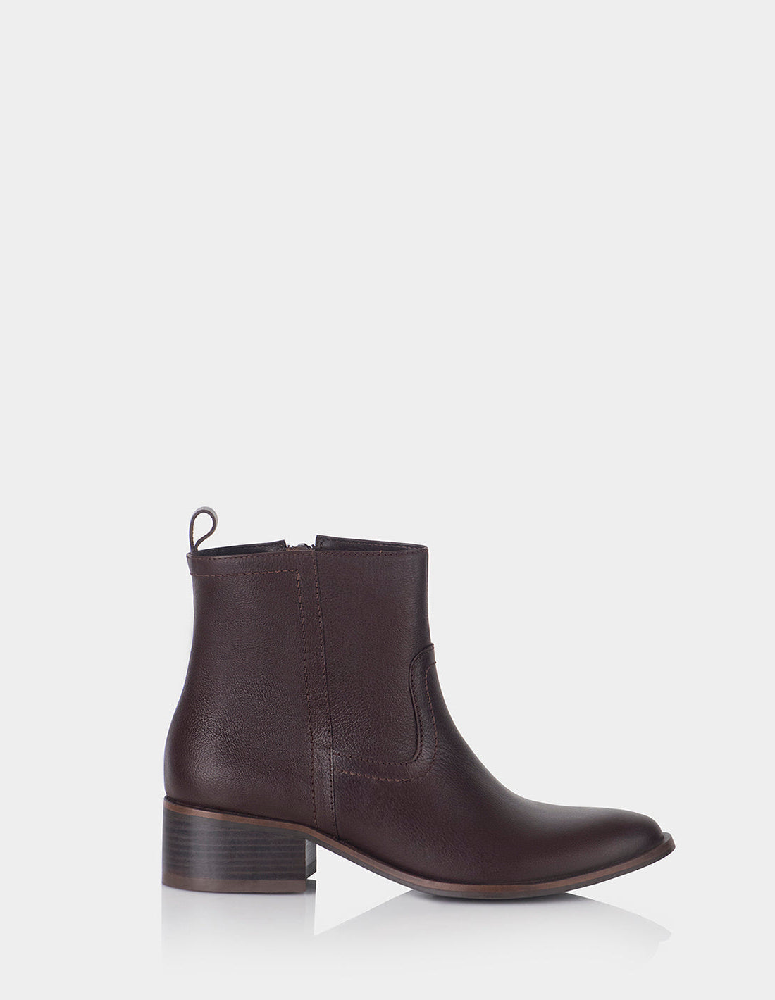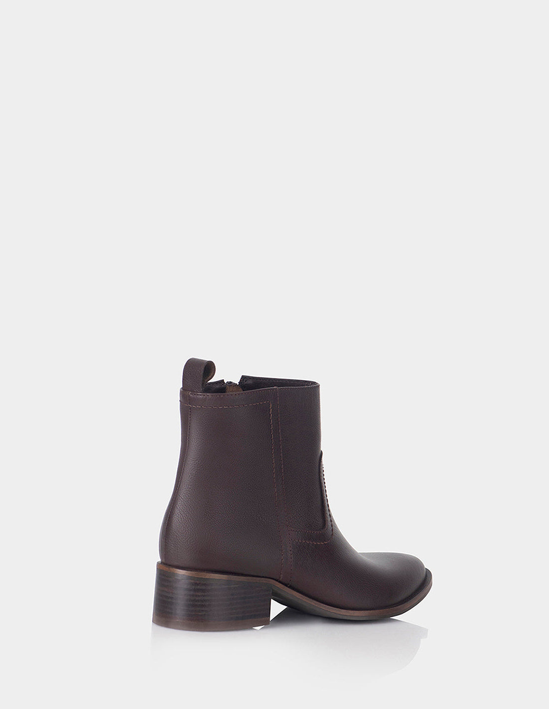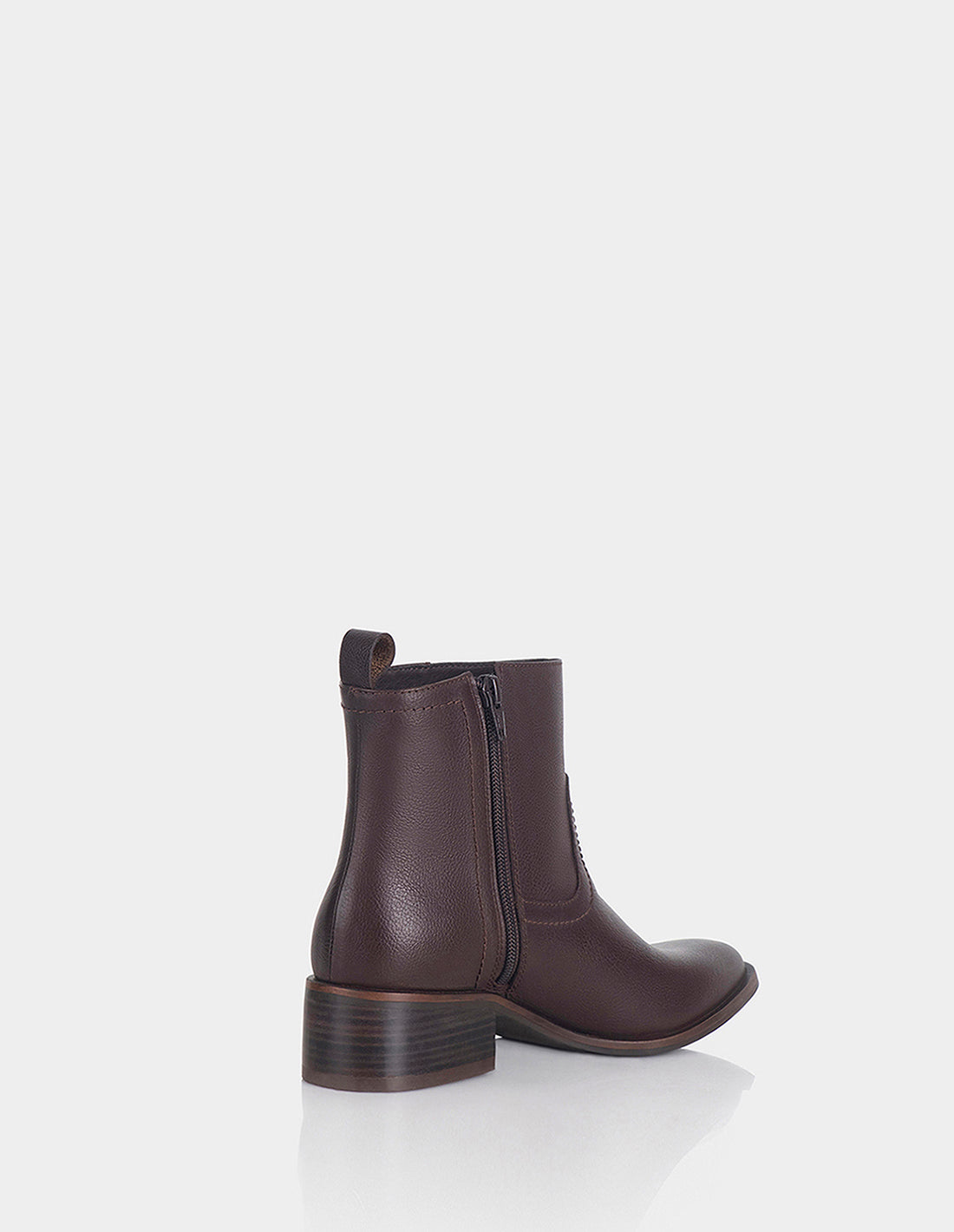 Elaboradas en cuero genuino de tono cafe , su silueta minimalista y corte al tobillo las convierte en el complemento ideal para cualquier ocasión. Su tacón bajo y ancho ofrece máxima estabilidad, mientras que el diseño limpio aporta un toque cómodo y moderno.
