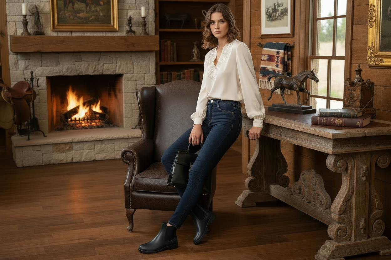 Este botín tipo Chelsea es una opción moderna y funcional para los días lluviosos. Fabricado en caucho de alta calidad, su diseño combina un acabado brillante en color negro con una suela gruesa en tono fucsia vibrante, aportando un toque de contraste y estilo único. Cuenta con paneles laterales elásticos que facilitan el calce y brindan comodidad, además de un tirador trasero para mayor practicidad. La suela con relieve antideslizante proporciona estabilidad en superficies húmedas, convirtiéndolo en una alternativa ideal para mantener los pies secos sin sacrificar el estilo.