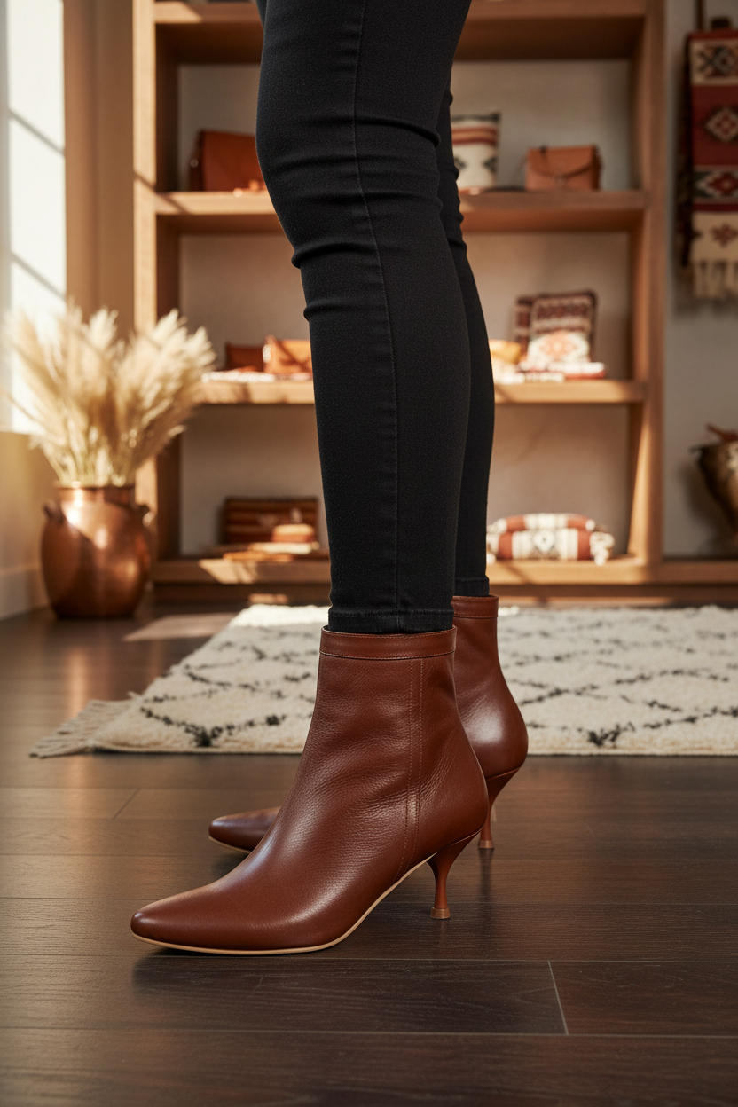 Altura del Tacón : Con un tacón medio de 5,5 cm, los botines Frida proporcionan una altura cómoda que es ideal tanto para el día como para la noche.