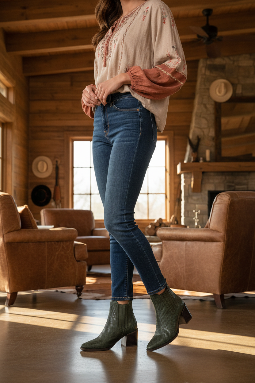 El botín Lisboa es una propuesta que combina estilo, comodidad y versatilidad. Disponible en tres tonos sofisticados —verde militar, negro y taupe—, este diseño se adapta fácilmente a cualquier ocasión, desde looks casuales hasta atuendos más formales.