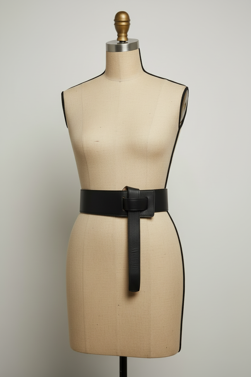 Cinturón elaborado en piel genuina de alta calidad en color negro, con acabado liso y textura suave que aporta elegancia y resistencia. Su diseño ancho lo convierte en una pieza protagonista, ideal para marcar la cintura y complementar vestidos, blazers o looks casuales con un toque moderno.