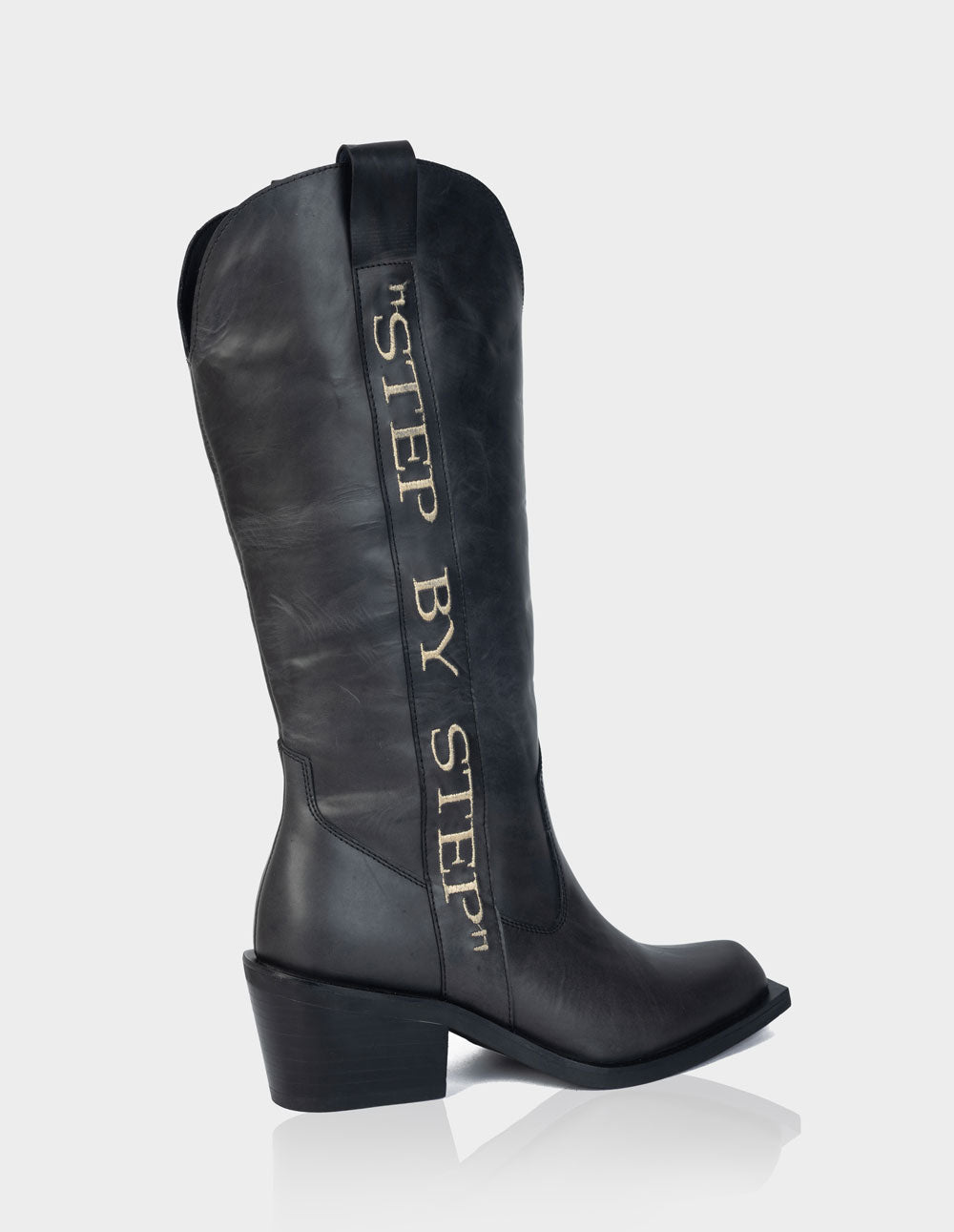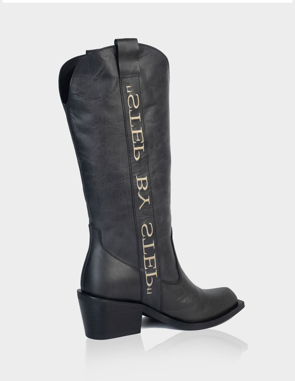 La Bota Texana Barbara en cuero 100% natural combina tradición y modernidad para elevar cualquier atuendo. Su caña alta y silueta estructurada con punta semicuadrada aportan un carácter distintivo, mientras que el tacón ancho de 5.5 cm garantiza comodidad y estabilidad durante todo el día. El diseño pull-on sin cierre facilita un calce limpio y práctico, complementado por una cinta lateral con inscripción bordada que añade un toque urbano y contemporáneo. Disponible en tonos miel y negro, esta bota versátil es perfecta para quienes buscan un estilo western auténtico con personalidad y sofisticación.
