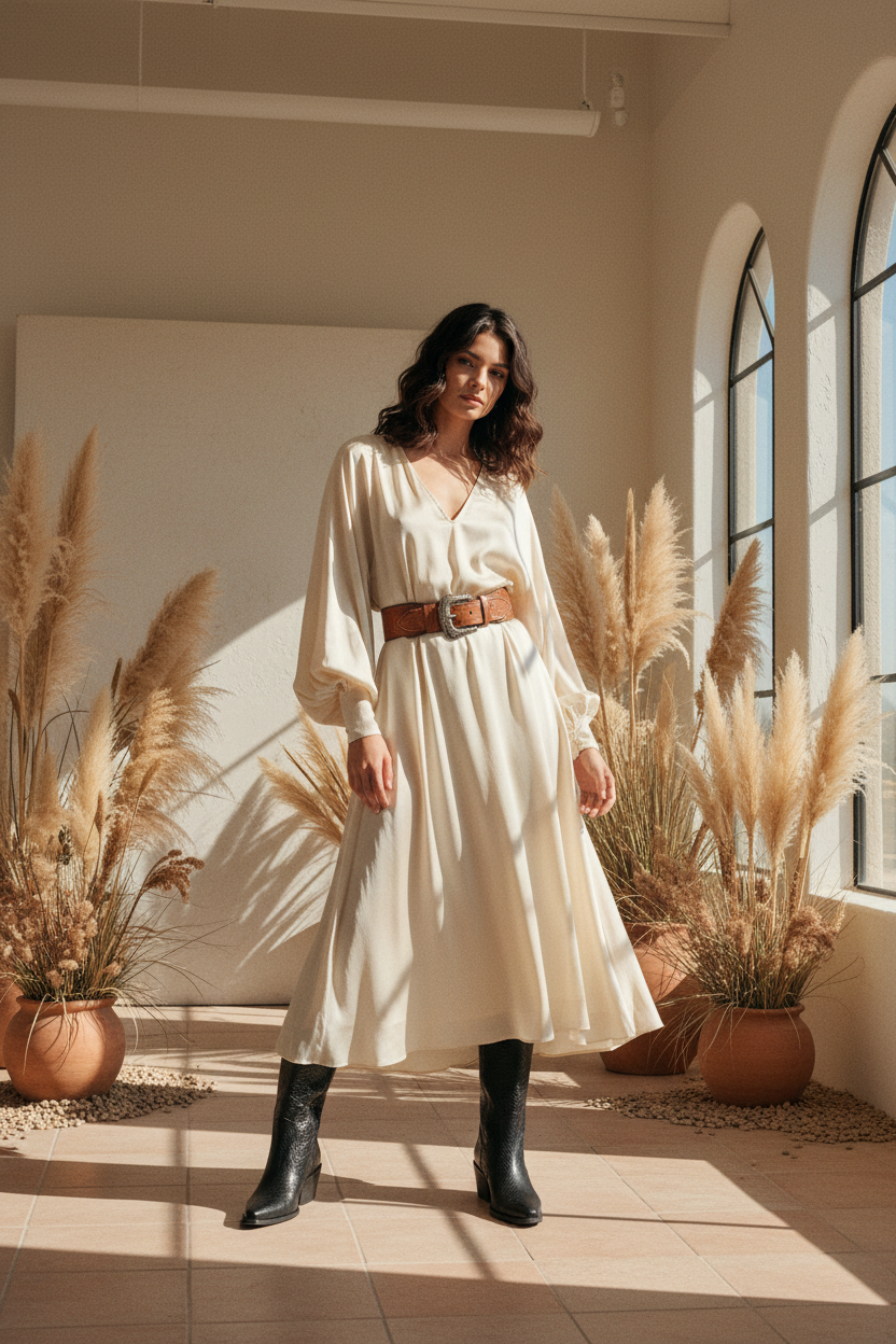 Texana Durango Croco Negro: bota de cuero croco con punta puntiaguda, tacón cuadrado de 5 cm y caña alta. Forro textil para comodidad y transpirabilidad. Versátil para looks casuales y formales. Se moldea al pie con el tiempo. Mantenimiento regular con productos específicos para cuero croco preserva su durabilidad y acabado.