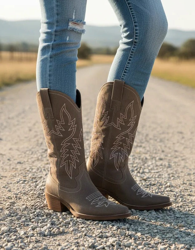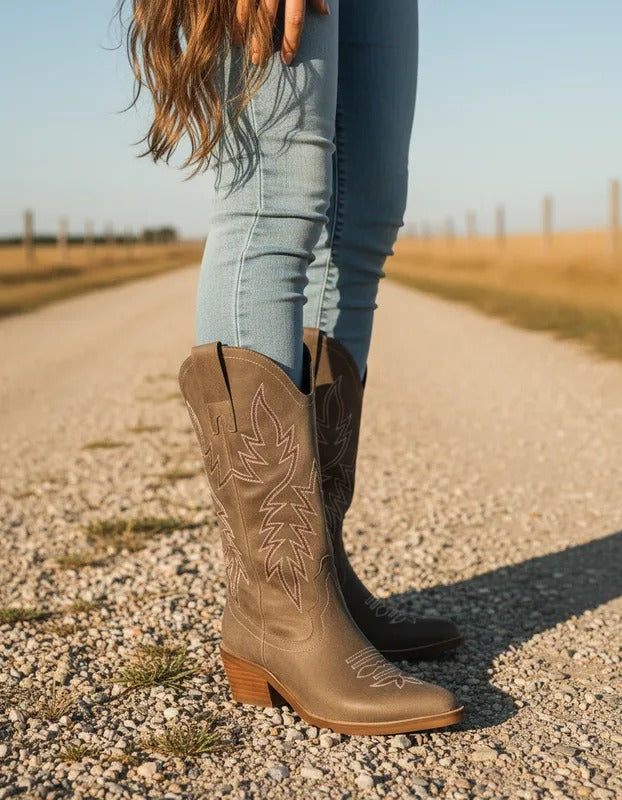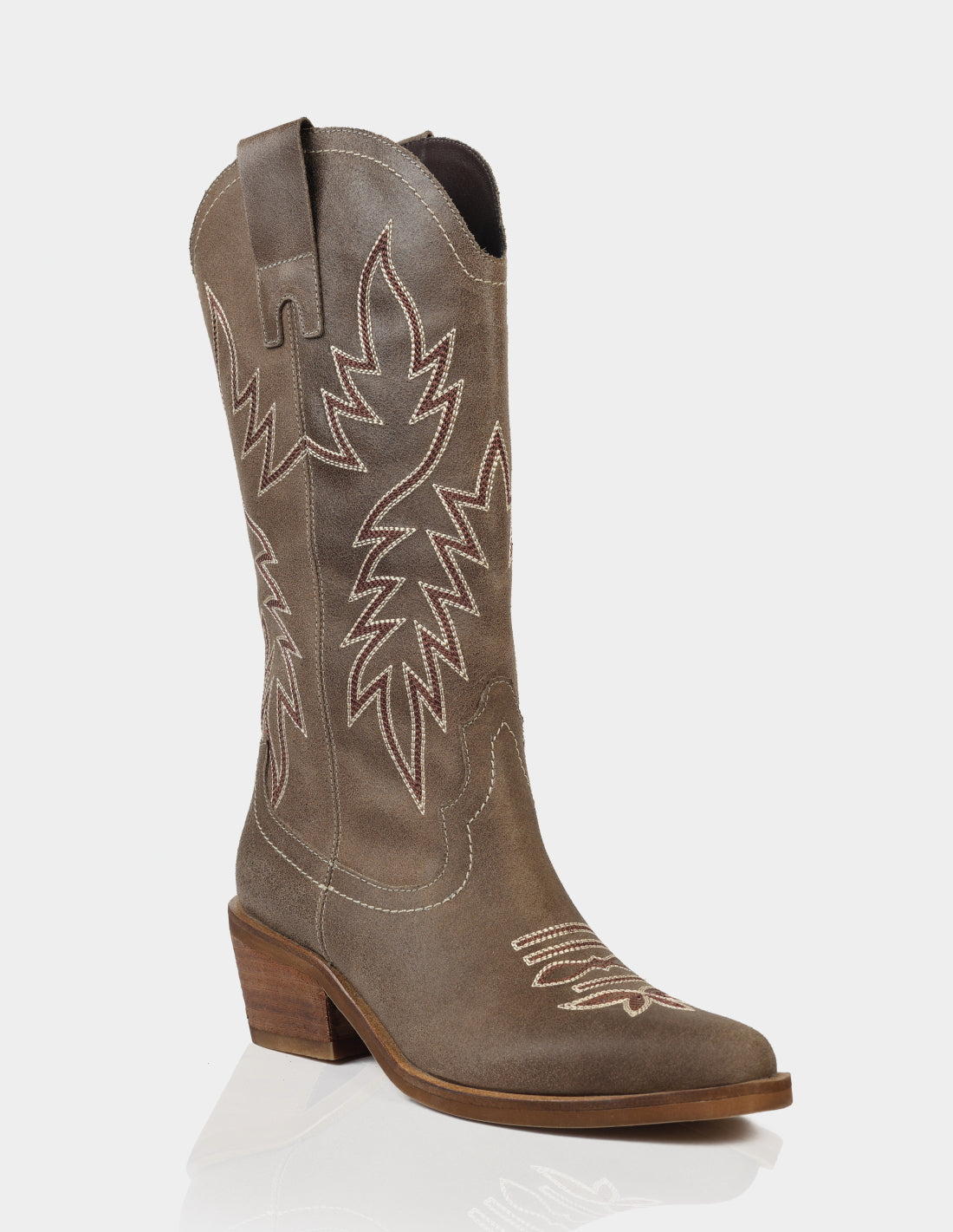 Su caña de altura media y los tiradores laterales facilitan el calce, mientras que el tacón bajo tipo western brinda estabilidad y confort durante todo el día. La puntera ligeramente afinada y la suela resistente completan este diseño versátil, ideal para combinar con looks casuales, urbanos o inspirados en el estilo cowboy.