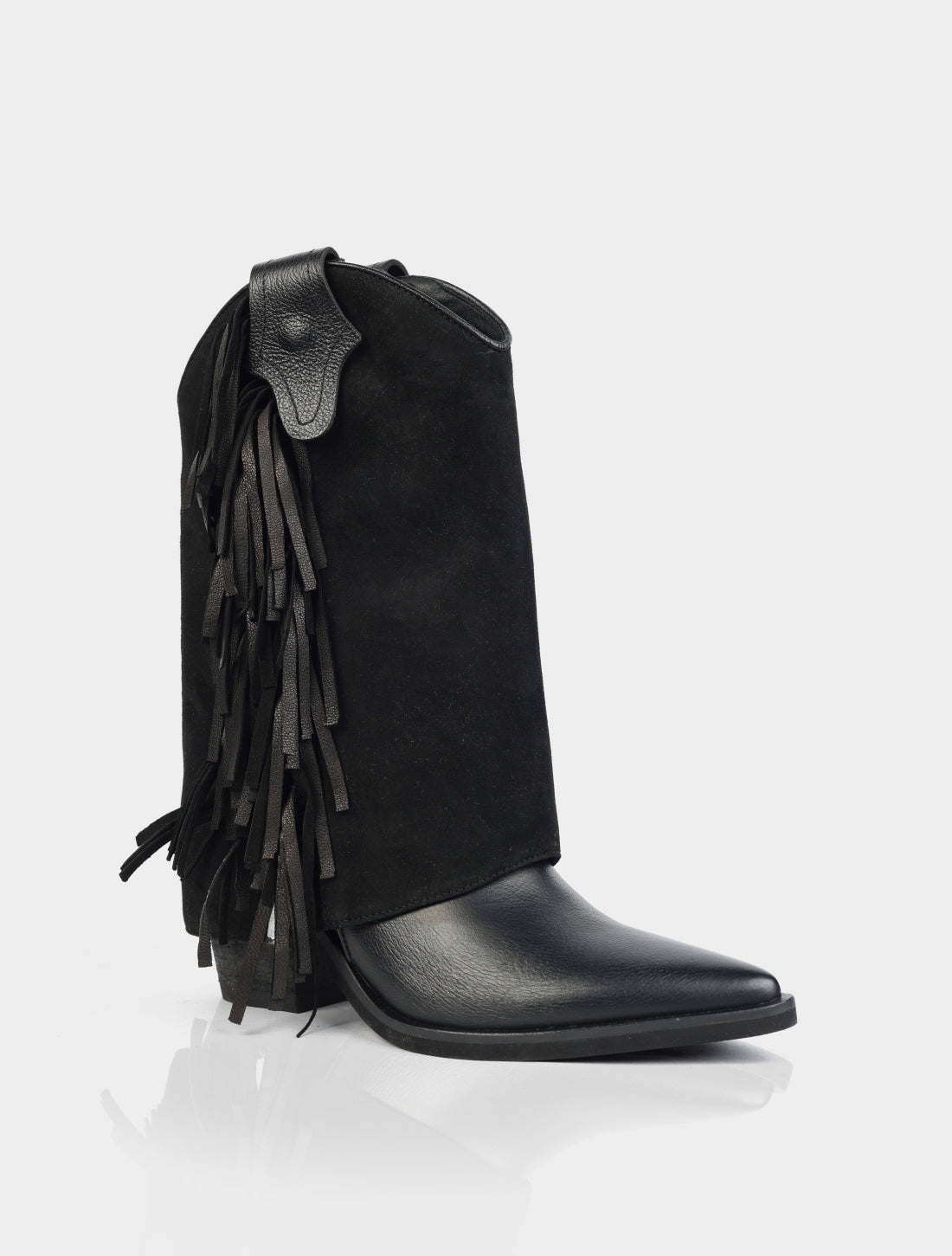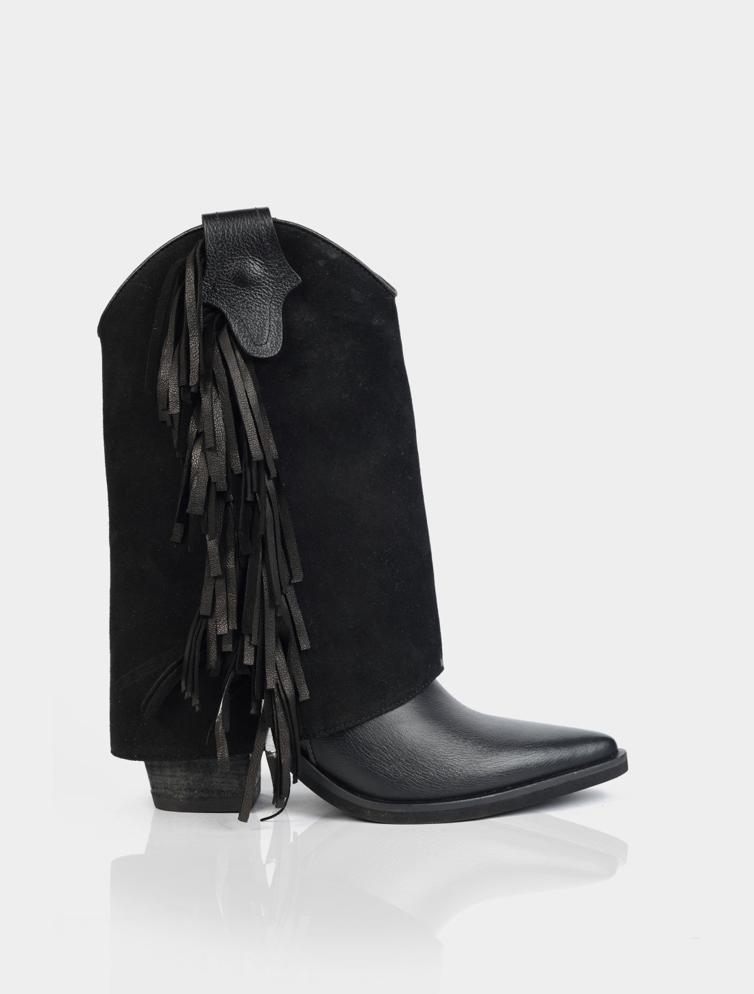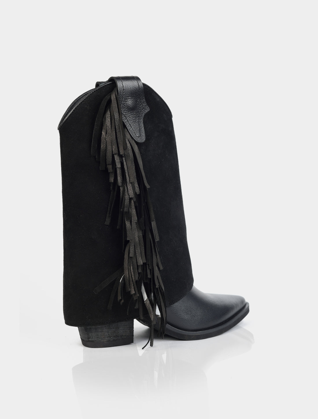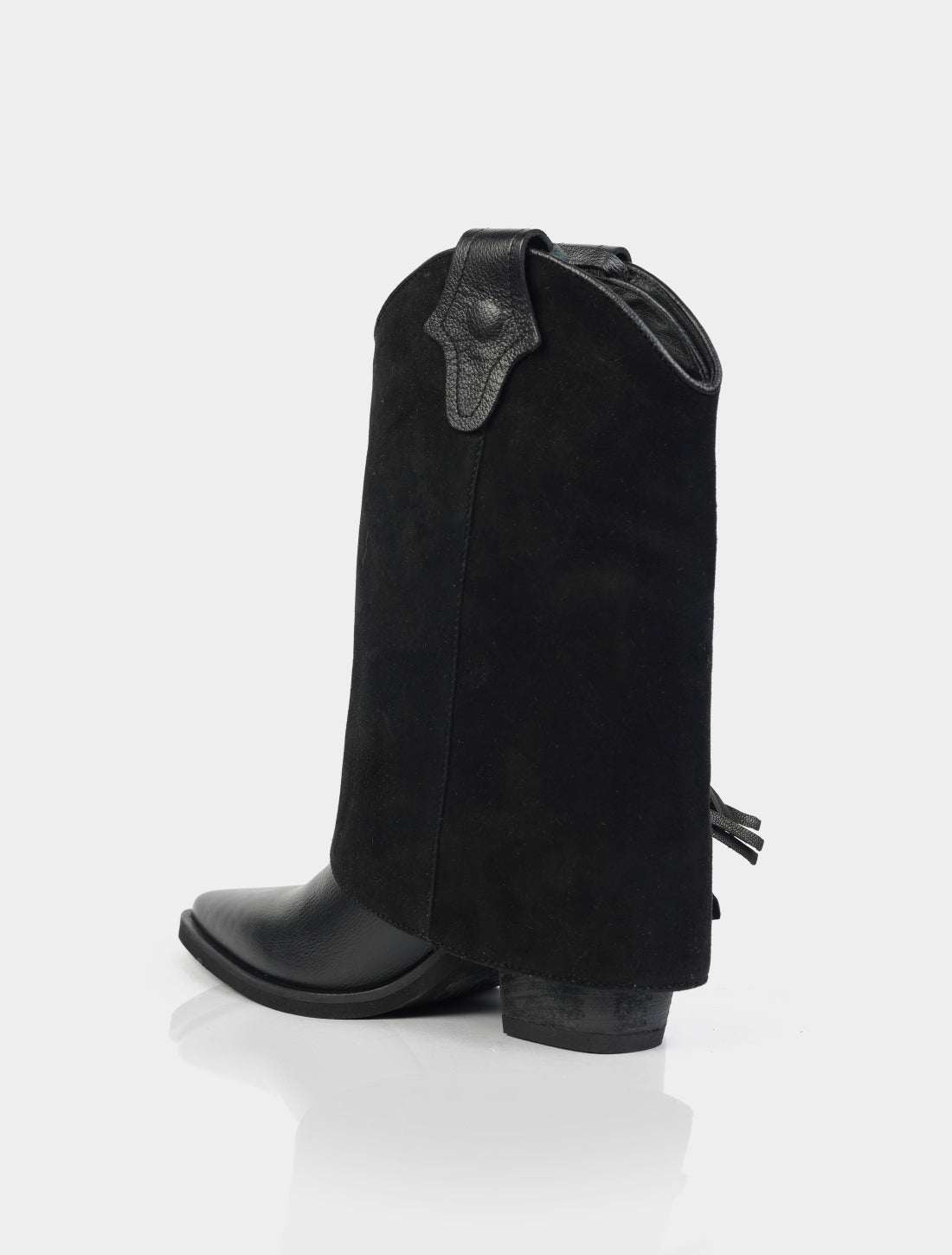 La principal particularidad de este modelo es su caña removible, que permite transformar la bota fácilmente: puede usarse como bota alta de estilo western, o bien retirando la caña, como bota baja, logrando dos looks diferentes en un solo producto.