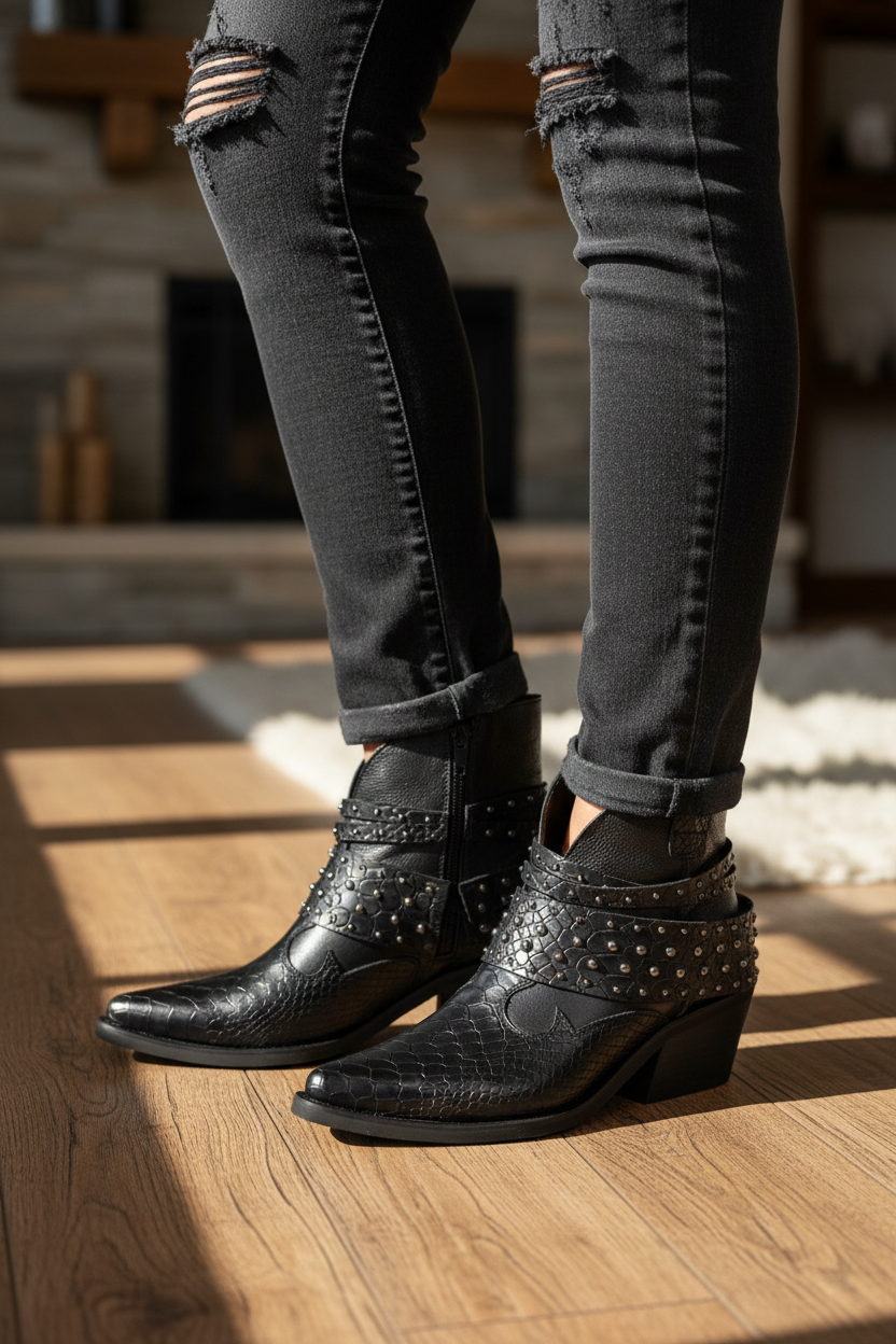 El botín Texana San Diego Negro Taches es el calzado ideal para aquellos que desean añadir un elemento de carácter y originalidad a su look sin renunciar a la calidad y la artesanía tradicional. Su diseño con taches metálicos garantiza que captará miradas y complementará con audacia tanto los atuendos casuales como los más elaborados.
