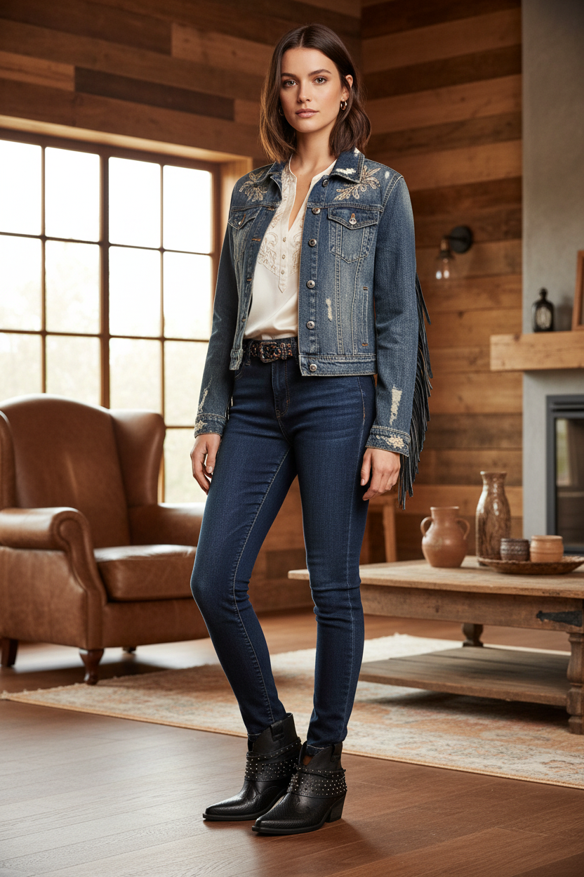 Botín estilo western con textura y aplicaciones metálicas