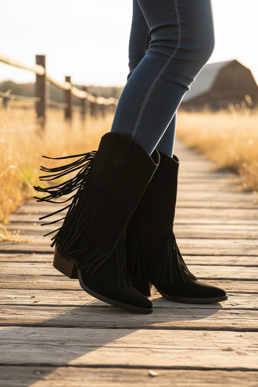 La Texana Zahon Gamuza es el calzado perfecto para quienes aman el espíritu libre del oeste con una interpretación moderna. Sus flecos en movimiento y su tono cálido la convierten en una pieza imprescindible para looks casuales con mucha personalidad.